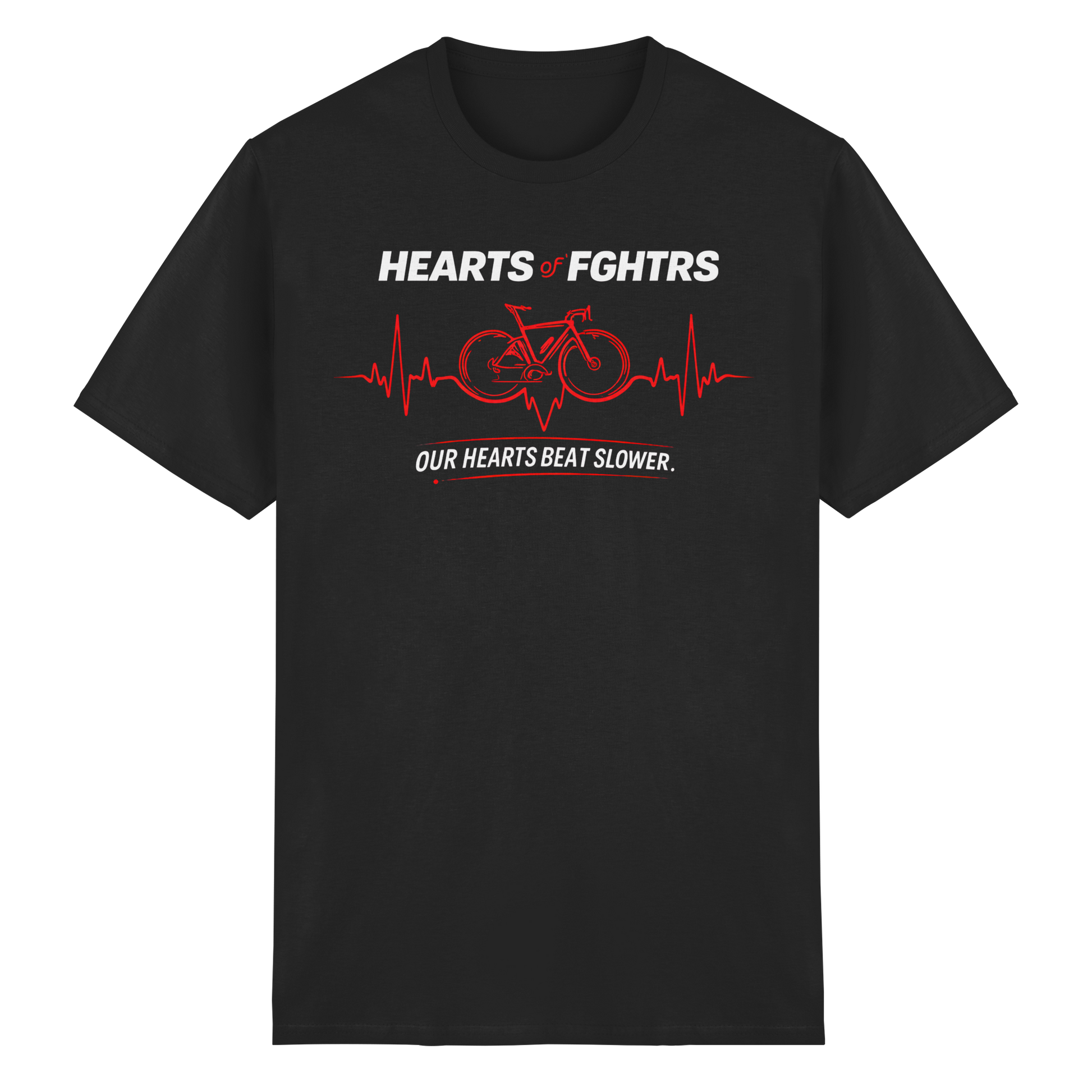 Spüre den Kampfgeist: Die "HEARTS OF FGHTRS" T-Shirt-Kollektion verkörpert Stärke und Entschlossenheit. Das zentrale Motiv zeigt ein Fahrrad, eingebettet in eine Herzlinie, was für Ausdauer und Leidenschaft steht.